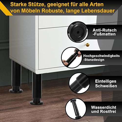 Sonnewelt 4er Set Edelstahl Möbelfüße,Schwarz Möbelbeine 18-30cm Höhenverstellbar, Füße für möbel mit Schrauben, | Belastbar bis 300 KG, für Sofa Möbelfüße Schreibtisch Stühle