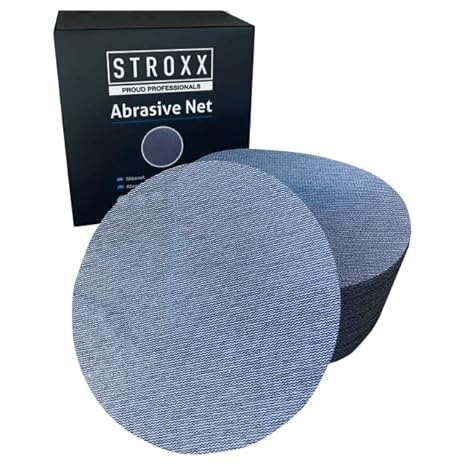 STROXX – Netz Schleifscheibe 50 Stück mit Klett – Schleifblätter Ø150mm zum staubfreien Schleifen von Holz, Spachtel, Lack & Kunststoff – Schleifpapier für Exzenterschleifer (Korn 80)