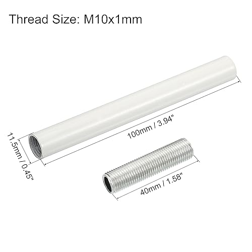 sourcing map 2-Set Verlängerungsstangensatz M10 3,94' Überwurfmutter mit Gewinderohr Weiß