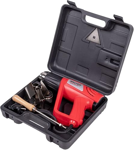WALTER Heißluftpistole 2000 W, 2 Stufen, 350°C bis 550°C, robuster Aufbewahrungskoffer, Zubehör-Set, vielseitig einsetzbar, Erhitzen, Basteln, Anzünden, Folieren oder Entfernen von Aufklebern