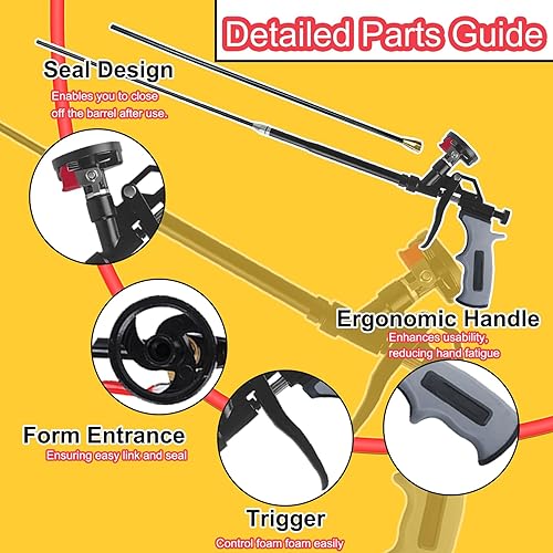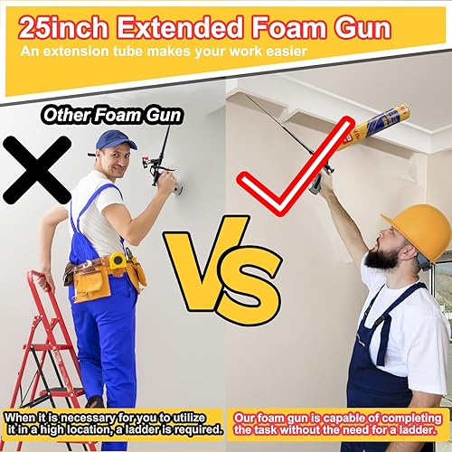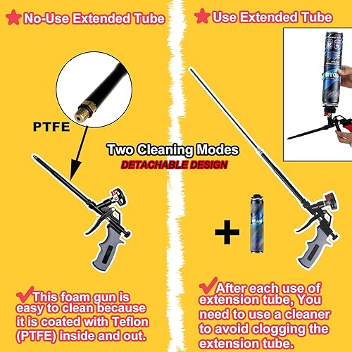 63 cm lange Schaumpistole, professionelle PTFE-beschichtete Schaumpistole, Spray-Schaumpistole, Pu-Schaum Applikator zum Abdichten und Isolieren (Grau)