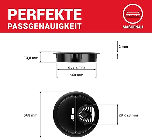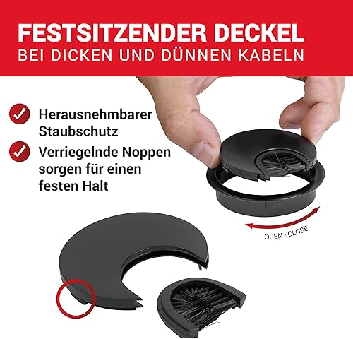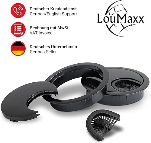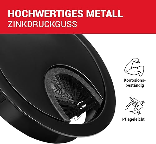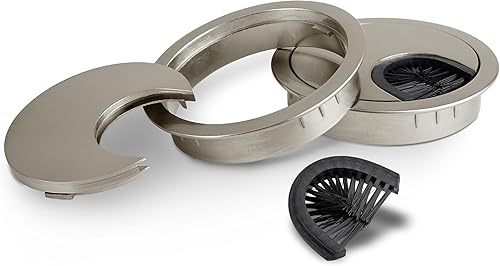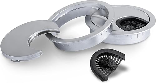 LouMaxx Kabeldurchführung Schreibtisch 60 mm Ø – 2 Stück Kabeldurchlass aus Metall matt Chrom mit Staubdichtung - Schreibtisch Kabeldurchführung für Ordnung und Übersicht am Arbeitsplatz