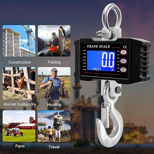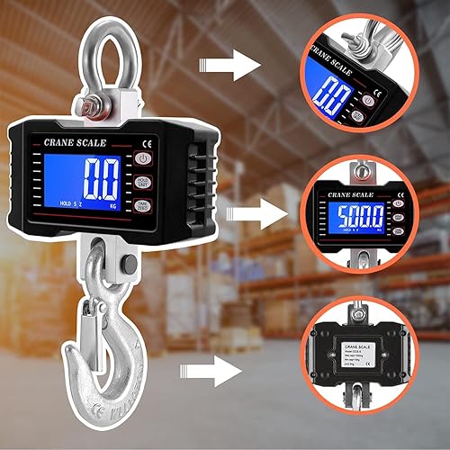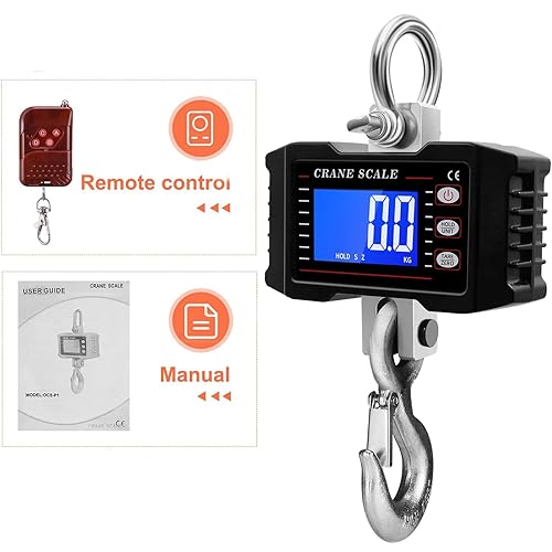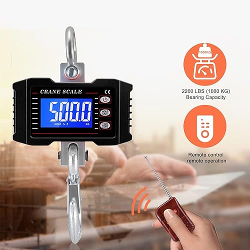 Digital Kranwaage 1T 1000KG 2200lbs, Elektronische Hängende Waage mit Fernbedienung, Schwere Typ Industrie Hängewaage Zugwaage Wiederaufladbare, Tragbare Wildwaage mit LCD Anzeige & Hohe Genauigkeit
