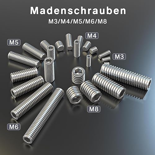 ORTAVA 20 Stück Madenschrauben, Gewindestifte M4 x 12 mm DIN 913 / ISO 4026 mit Innensechskant (ISK) und Kegelkuppe, Madenschraube Edelstahl(Silber)
