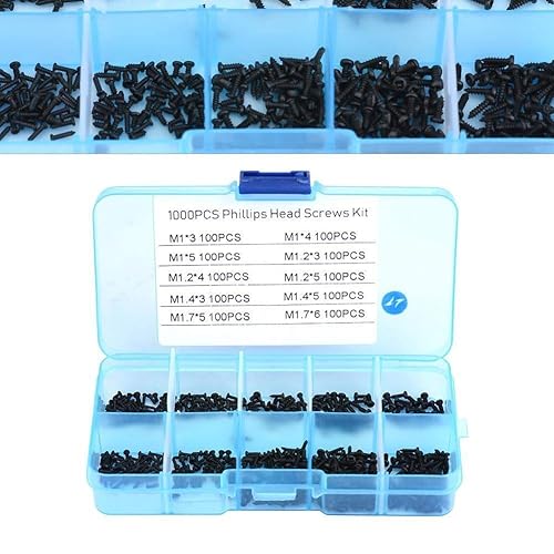 KSTE 1000pcs kleine Schrauben Kreuzkopfblechschrauben Sortiment Kit M1 M1.2 M1.4 M1.7