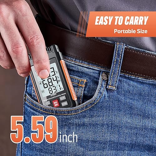 HT607 Temperatur-Feuchtigkeitsmessgerät Hochpräzisionsmessgerät mit Umgebungsluft, relativer Feuchte, Taupunkt, Feuchtkugelthermometer, Min/Max Hold, LCD-Hintergrundbeleuchtung