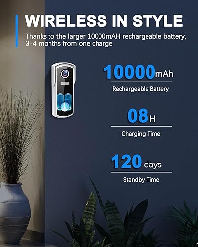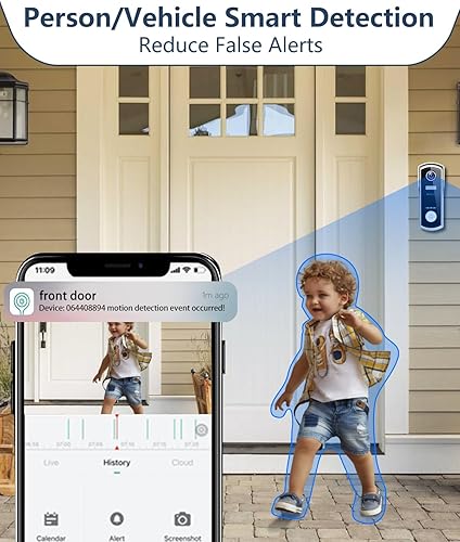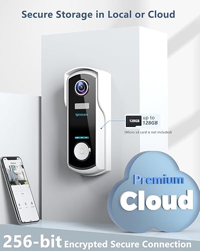 UCOCARE Türklingel mit Kamera, 2K/4MP Klingel mit Kamera, Funkklingel mit Kamera mit Kostenloser Innengong, KI-Menschenerkennung, 3 Sprachwechsleroptionen, 180 Tage Akkulaufzeit, Diebstahlalarm, IP67