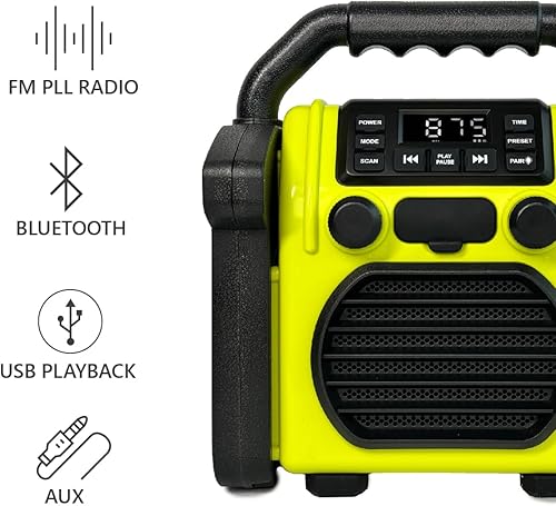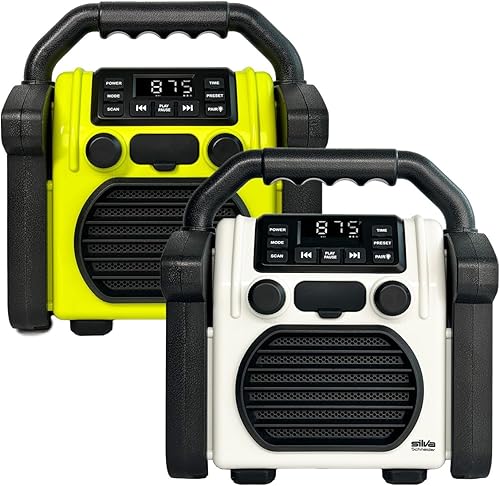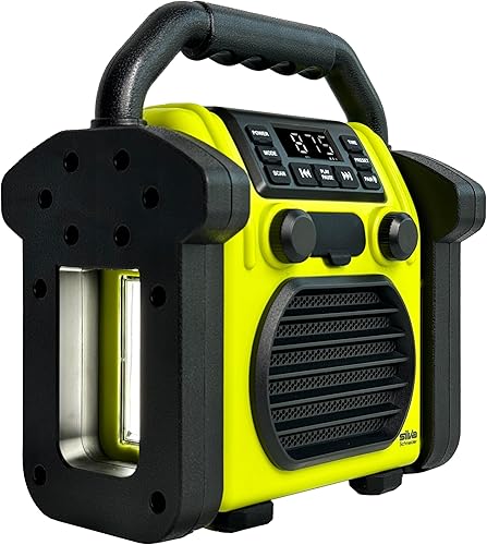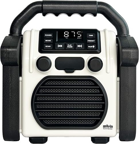 BR 230 BT, Baustellenradio Bluetooth - Neongelb/Offwhite - Silva Schneider - Digitales PPL Radio, 100 Watt, IP55 Staub- & Wasserdicht, 4000 mAh Akku, USB-Ladefunktion, Taschenlampe & Alarm