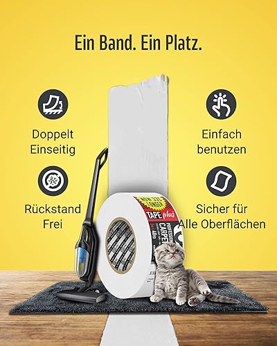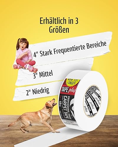 Professionelles Teppich-Klebeband, 5,1 cm x 40 m, 2 x mehr. - Doppelseitiges, rutschfestes Teppichband, hochwertiges weißes Finish, Perfekter Greifer zum Halten von Teppichen im Innenbereich