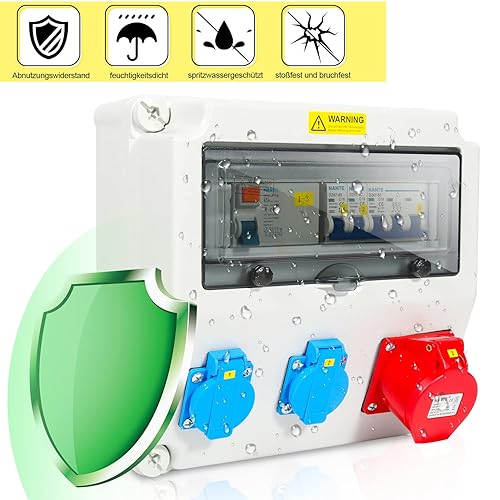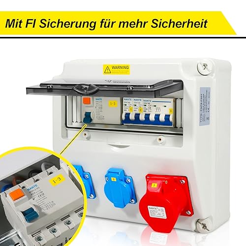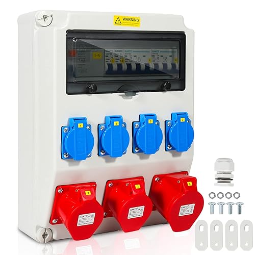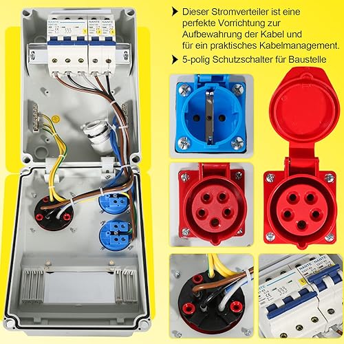 Tubiaz Baustromverteiler 4x230V 2x16A 1x32A 400V CEE, Wandverteiler mit FI Schalter LS Schalter, Cee Verteiler Stromverteiler IP44 für den Einsatz im Freien und auf Baustellen