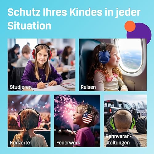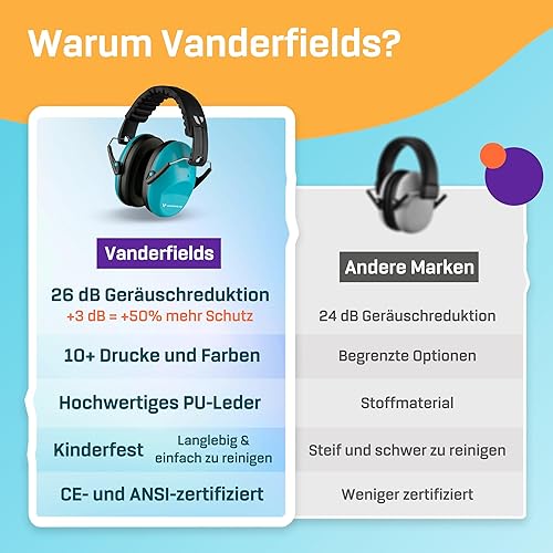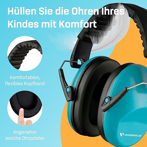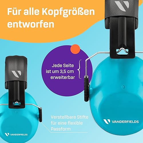 Vanderfields Gehörschutz Kinder - Lärmschutz Kopfhörer - Blau - Passiver Ohrenschützer Kind - Kapselgehörschutz Schule, Schlagzeug, Autisten, Konzert, Junge, Mädchen - 3-16 Jahre - 26dB SNR