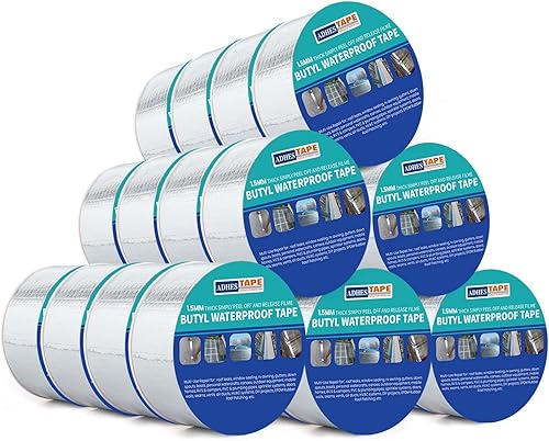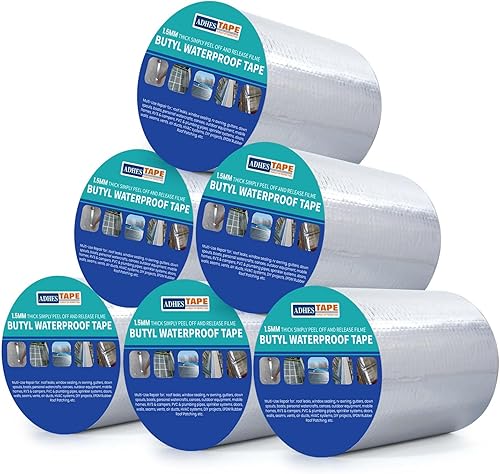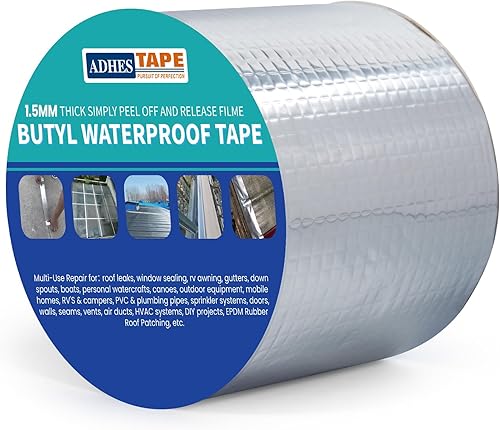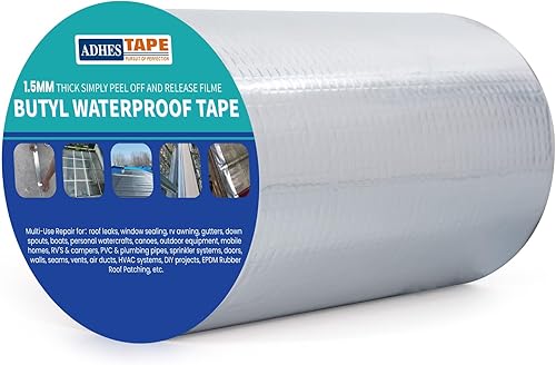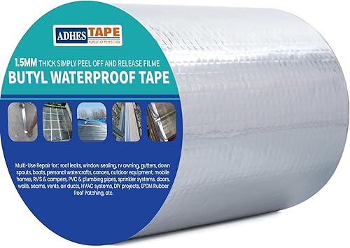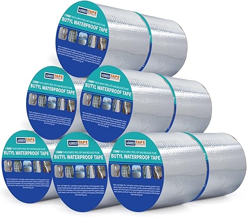 ADHES 1.5mm Dick Wasserdichtes Butylband, Starkes Selbstklebendes DichtungsbäNder 100mm x 5m x 1 Rollen Silber Aluminiumfolie Klebeband für, Bauwerke, Fassaden, Wohnwagen, Fenster, Container