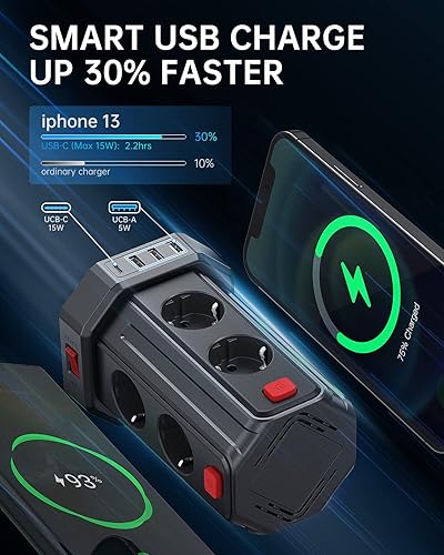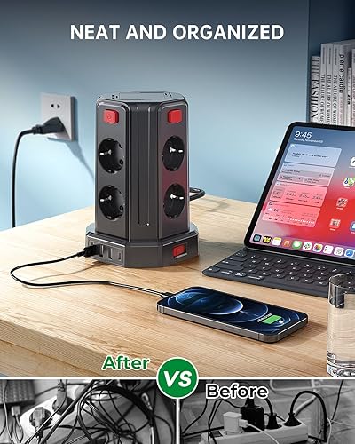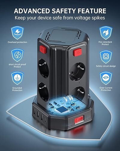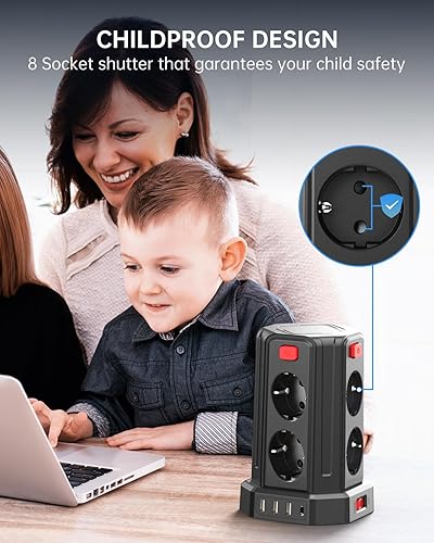 Steckdosenleiste mit 4 USB, Sameriver 8 Fach Mehrfachsteckdose Überspannungsschutz, Steckdosenleiste Steckdose mit Schalter, 3M Verlängerungskabel,Steckdosenturm Mehrfachstecker für Zuhause,Büro