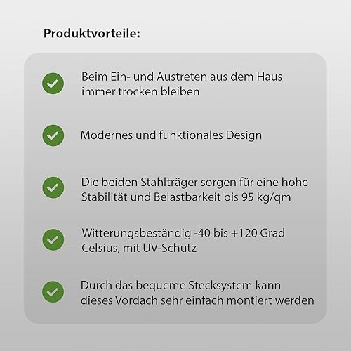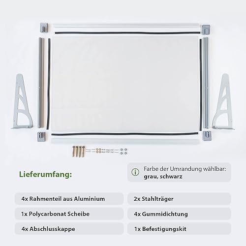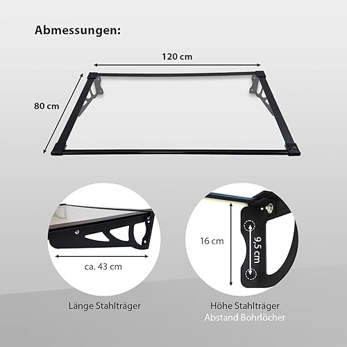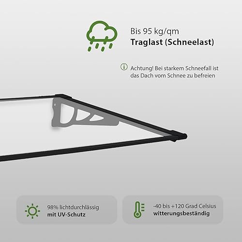 TrutzHolm® Aluminium Vordach Haustürvordach Pultvordach 150 x 90 cm Schneelast 95kg | Polycarbonatplatte | nach Auswahl (120x80 cm, schwarz)