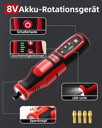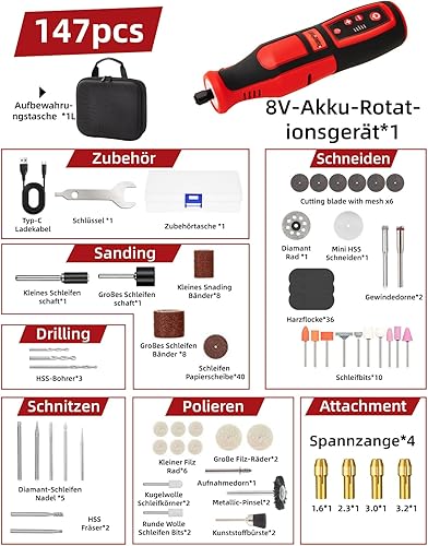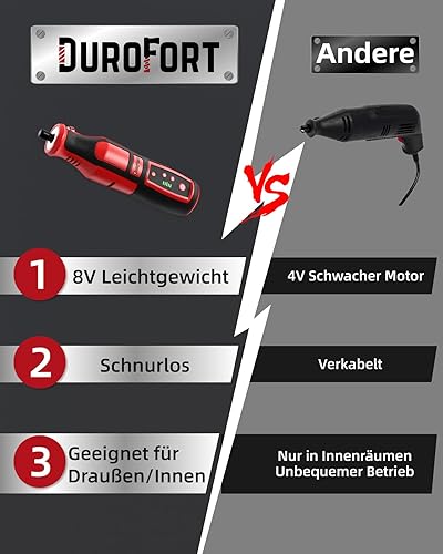 DuroFort 8V Akku Multifunktionswerkzeuge,5 Gang Rotationswerkzeug(17000-32000rmp),146 Zubehören Mini Multifunktionswerkzeug, LED-LichtGravurGerät zum Bohren, Gravieren, Polieren, Schleifen,Entrosten