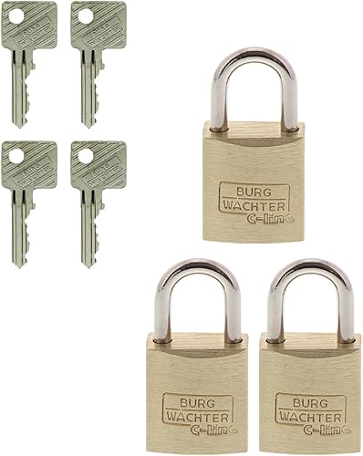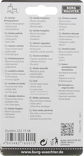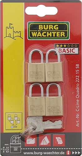 Burg Wächter Vorhängeschloss, 4er-Set, 5 mm Bügelstärke, 4 Schlüssel, Quadro 222 30 SB, QUADRO 222 30 GL SB