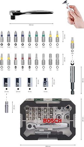 Bosch 26tlg. Schrauberbit- und Ratschen-Set (Extra harte Qualität, mit Adapter, Universalhalter, Zubehör Bohrschrauber und Schraubendreher)