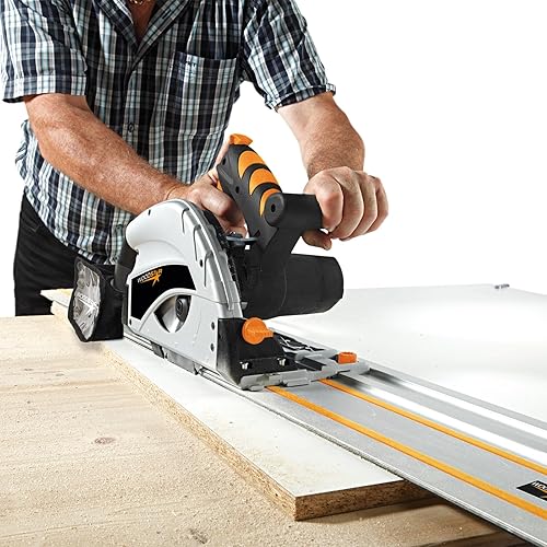 Woodster Tauchsäge Divar55 inkl. 2x 700mm Führungsschiene | 55 mm Schnitttiefe | 1200W | Sägeblatt Ø 160mm / 24Z | Schrägstellung 0-45° | inkl. Schienenverbinder und Kippschutz