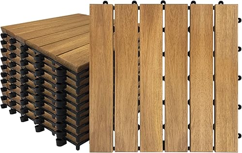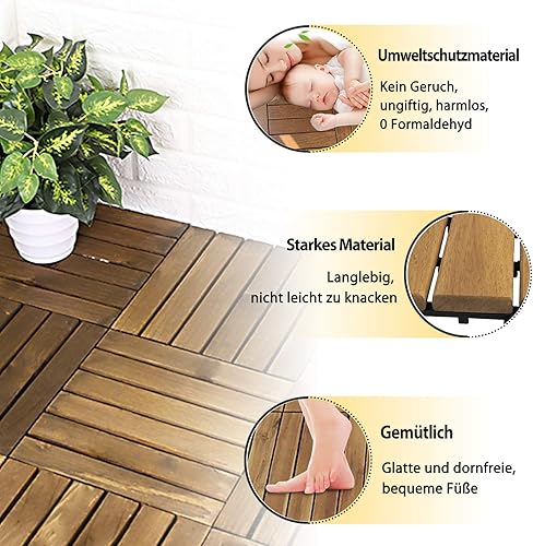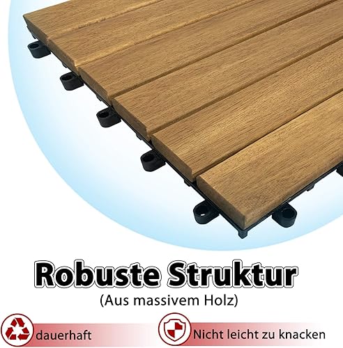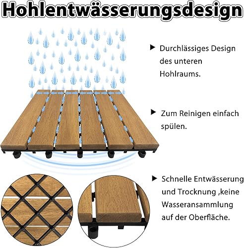 HENGMEI Holzfliesen balkon 30 x 30 cm mit klicksystem 22er Set für 2 m² Terrassenfliesen mit Drainage für outdoor, Garten, Terrasse, Model A
