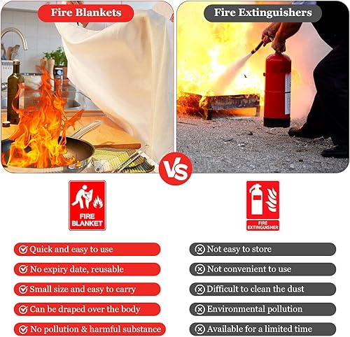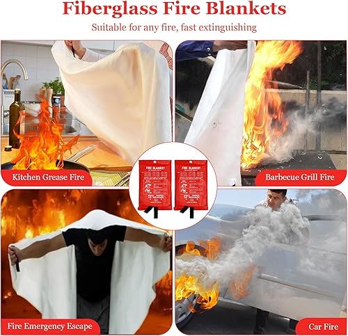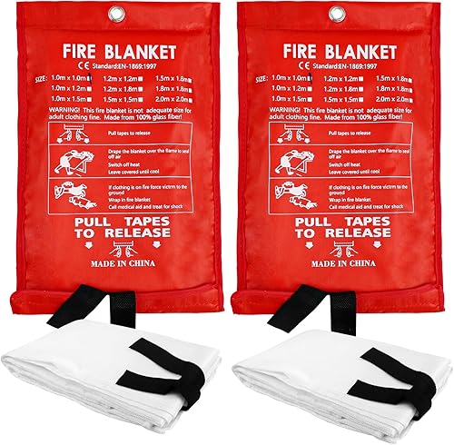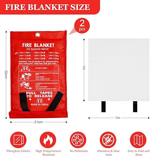 JOLIGAEA 2PCS Löschdecke, 1m x 1m Feuerlöschdecke, Glasfaser Brandschutzdecke Sicherheit, Löschdecke Küche Feuerlöscher, Löschdecke Glasfaser für Küche, Haushalt, Wohnwagen, Zuhause, Kamin