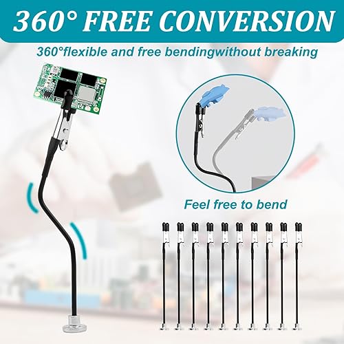 Dritte Hand Löten mit Magnetfuß 10 Stück 125 mm, Helfende Hände mit Flexiblen Schwanenhals für Präzisionsarbeiten, Platinenhalter und Lötunterstützung