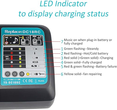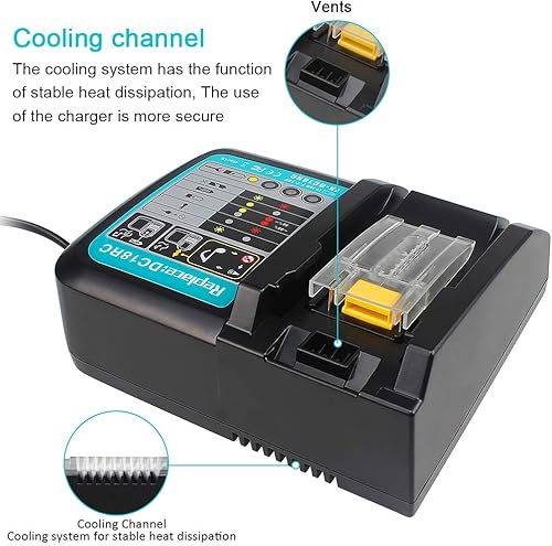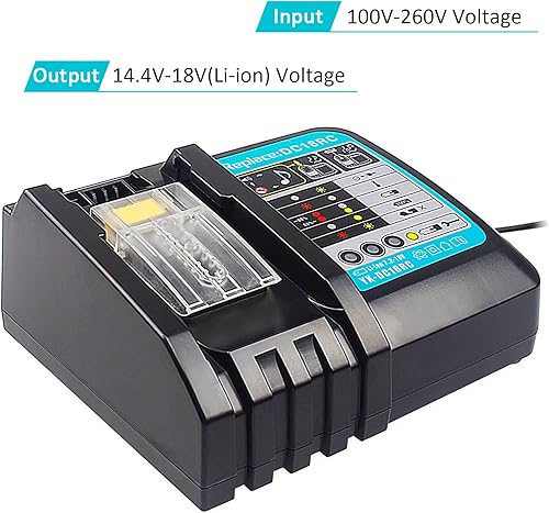 QUPERR lithium_ion - DC18RC Schnellladegerät Kompatibel mit Makita 14,4 V-18 V Li-Ion Ersatzakku BL1815 BL1830 BL1840 BL1850 BL1860 BL1890 BL1415 BL1430 BL1440, Schwarz