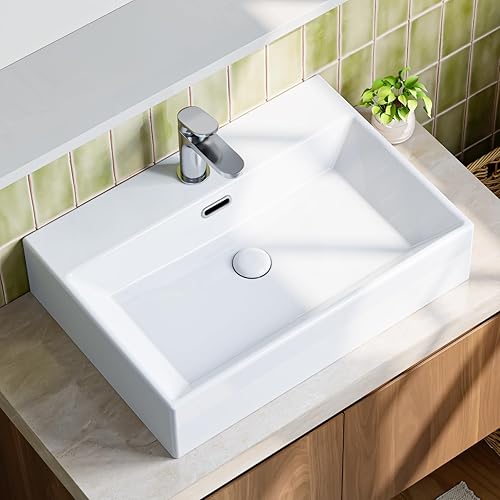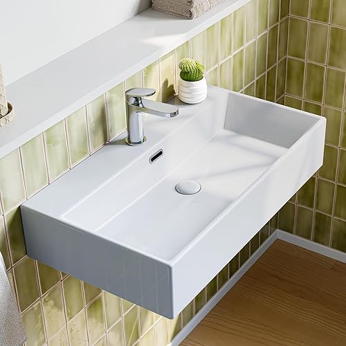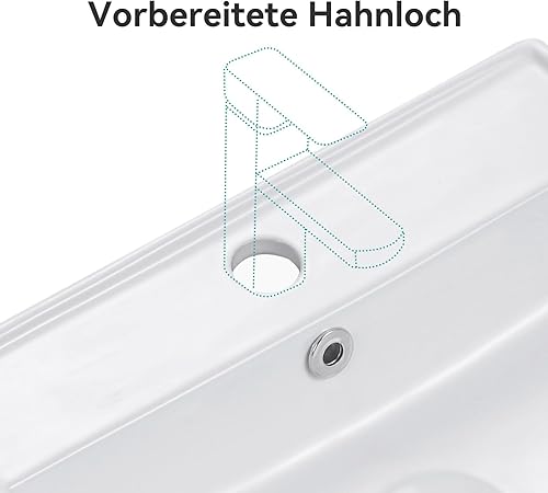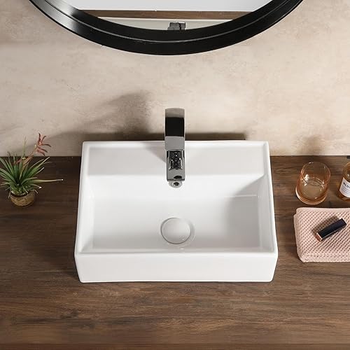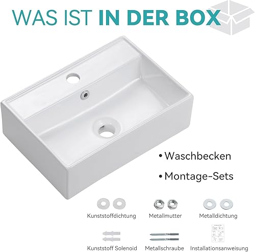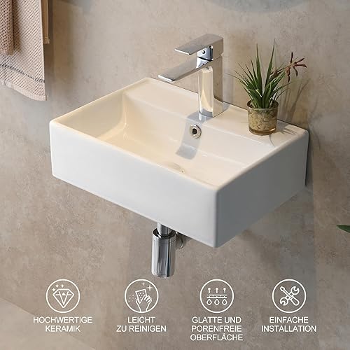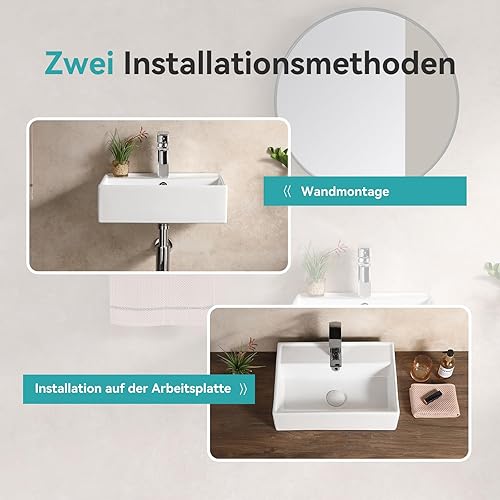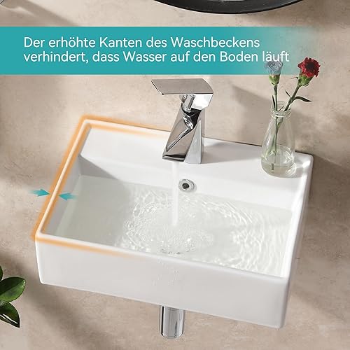 Teal Home Waschbecken Waschtisch aus Keramik, Aufsatzwaschbecken Eckig, Kleines Waschbecken Gäste WC, Hängewaschbecken Bad Weiß, Mini Bathroom Sink 45 x 31 x 13 cm