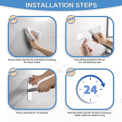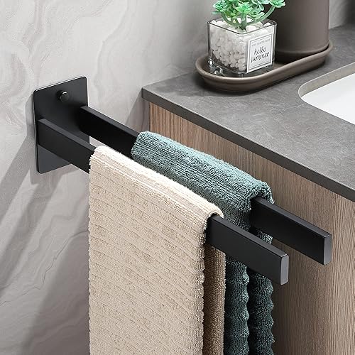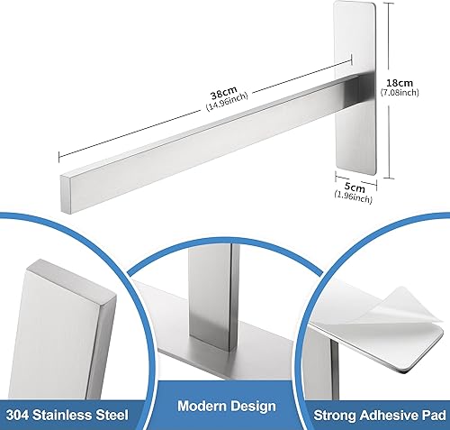 Dvocel Handtuchhalter Bohren Eckig Handtuchstange Doppelt 304 Edelstahl Silber Handtuchalterung Zweiarmig Handtuchhalter Wand für Bad und Küche 39CM