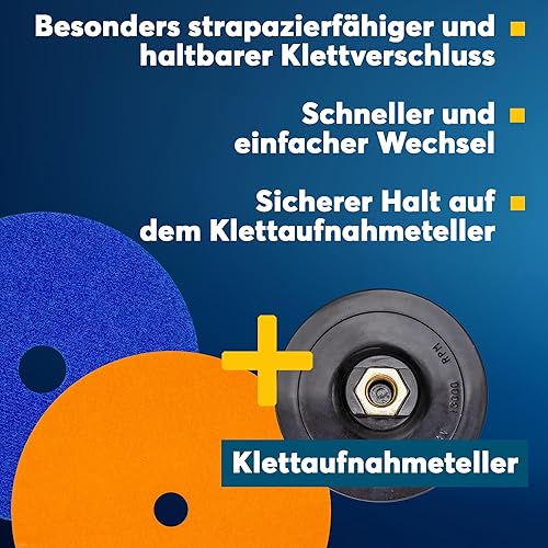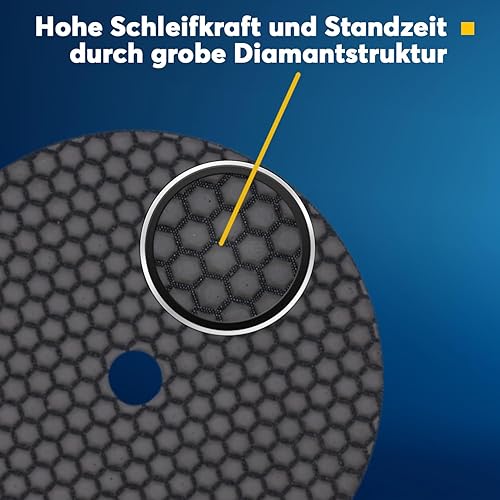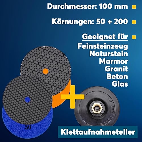 Profi Diamant-Schleifpad Spar-Set für Trockenschliff, D = 100 mm, Körnung 50 und 200, Klett-Aufnahmeteller, für Fliesen Feinsteinzeug Naturstein, Kunststein, Granit, Marmor, Glas, Keramik