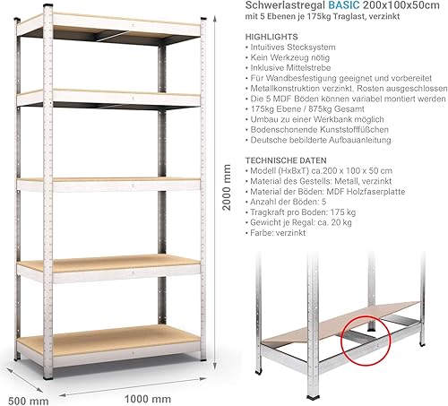 Panorama24 Lagerregal verzinkt belastbar bis 875kg - Maße: 200 x 100 x 50 cm, Regal Kellerregal Steckregal Werkstattregal Schwerlastregal