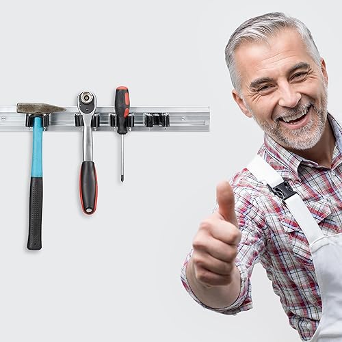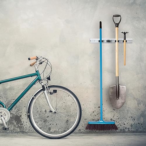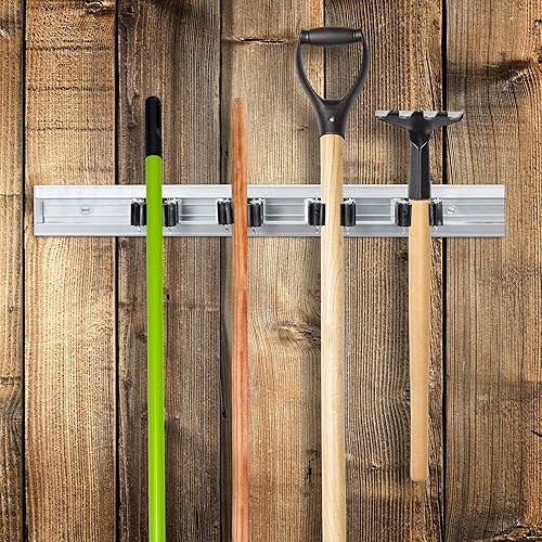 Relaxdays, Silber Gerätehalter Wandhalterung, 2er Set, Besenhalter Wand, je 4 Wandklemmen, für Gartengeräte, Aluminium