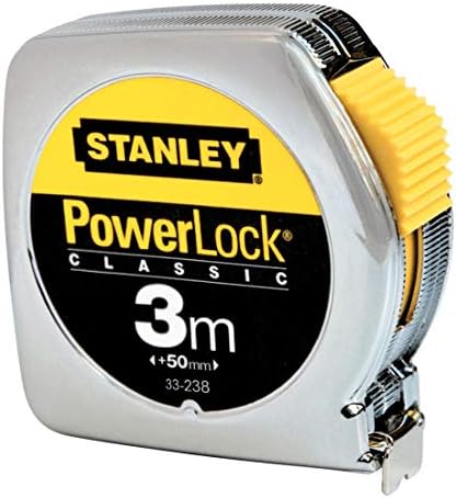 Stanley Bandmaß / Messband Powerlock (aus Metall, 3 m lang, mit Gürtelclip, extra starkes Band, gebogen, beidseitige Skala, Mylar-Schutzschicht, Endhaken zweifach vernietet) 1-33-218