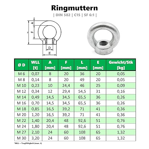 ALFA LOGISTIK Ringmutter M12 Galvanisch Verzinkt 15 Stück - Kranöse - Zurröse - Ösenmutter - Augenmutter - Ringmutter Legierter Stahl