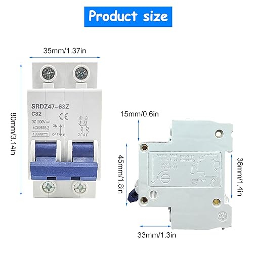DC Leitungsschutzschalter Mini, 2P 1000V Leitungsschutzschalter 32A, DZ47-63Z PV Anlage DC Trennschalter, Sicherungsautomat