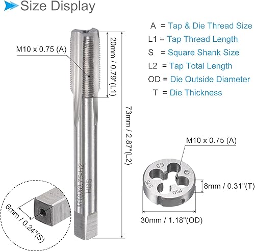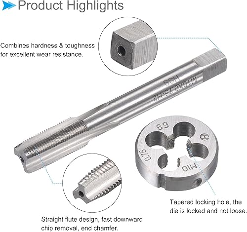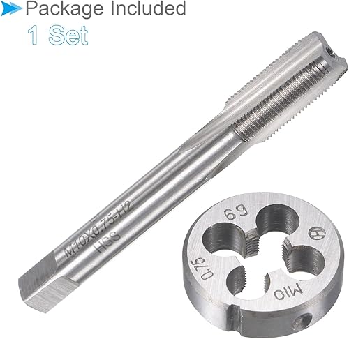 CoCud Gewindebohrer und Matrize Set M10 x 0.75 Gewinde Schnellarbeitsstahl Maschine Schrauben Gewindebohrer und Rundmatrizen - (für Gewindeschneiden Reparieren) 1Set