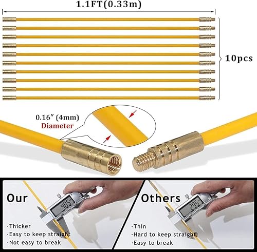 VOANZO 10 STÜCKE Kabelstangen Elektrische Stangen mit Haken und Loch-Kit Fiberglas Elektrisch anschließbares Fischband-Zug-Kit - Drahtdurchmesser 4 mm Länge 330 mm