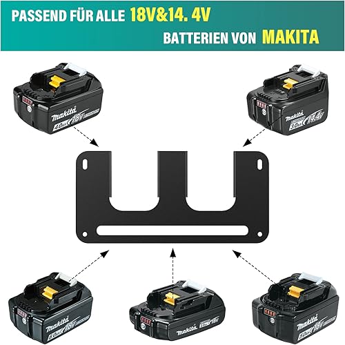 4er Wandhalterung für Makita Akkus, Akkuhalter für Makita 14,4V & 18V Akkus, Akku-Halterung Wandhalter fur Ordnung in der Werkstatt und Auto