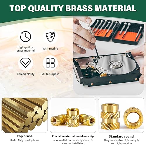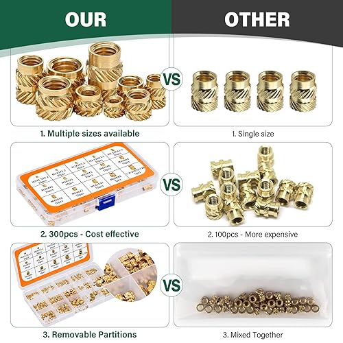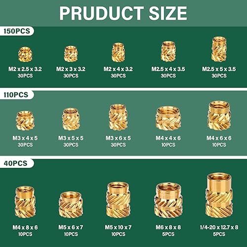 300 Stück Gewindeeinsatz M2 M2.5 M3 M4 M5 M6 Einpressmuttern Messing Gewindebuchsen Innengewinde Rändelmuttern mit Sortierbox für Kunststoffteilen in Durch Erwärmung oder Ultraschall in 3D Drucker