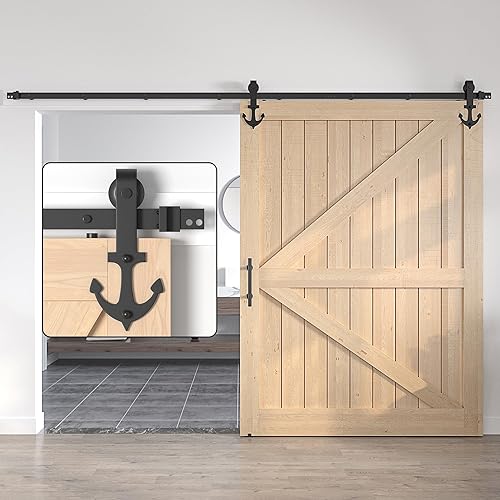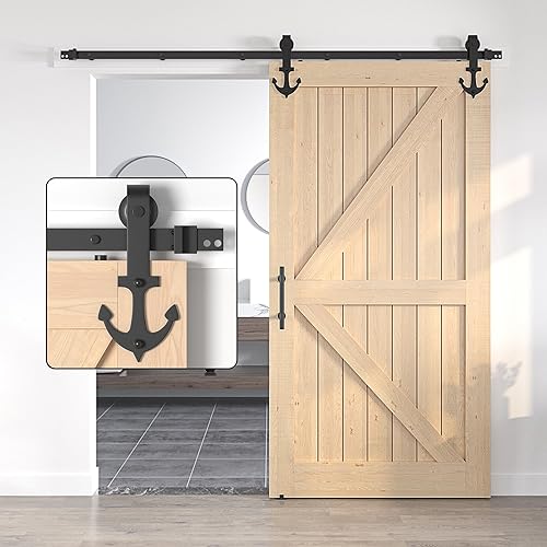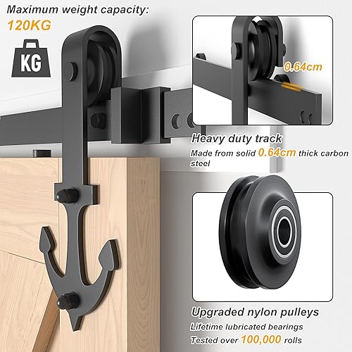 SANKEYTEW Schiebetür-Set, Holz-Scheunentor-Schiebetür-Schiebetürschiene, robustes Scheunentür-Set, ankerförmig (SD8+6-6)