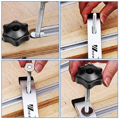12 Stück T-Schiene Gleitmuttern M8 Nutensteine T-Nut Muttern Kit mit T-Schraube und Klemmknopf M8 Kunststoffgriff für Holzbearbeitung Werkzeug
