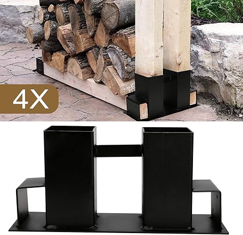 Izrielar Holzstapelhilfe, 4 Stück Metall Holzstapelhalter, Stabile Brennholz Lagerregal, für Innen und Außen Brennholz Kaminholzregal (Schwarz)