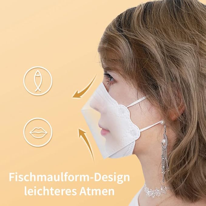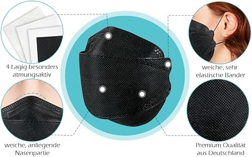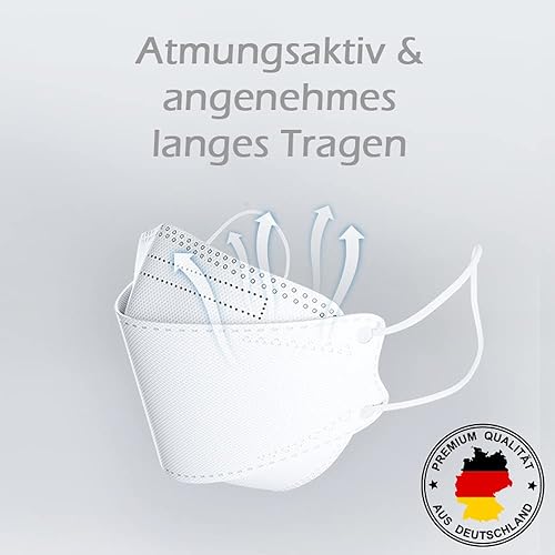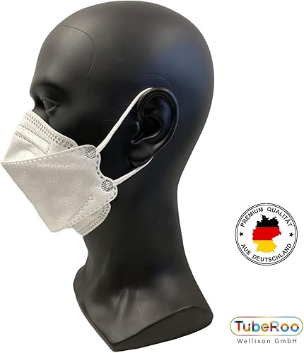 TubeRoo FFP2 Maske Fischform, 10 Stück Masken, Made in Germany Versand aus Deutschland, weiche Ohrschlaufen Bänder Atemschutzmaske