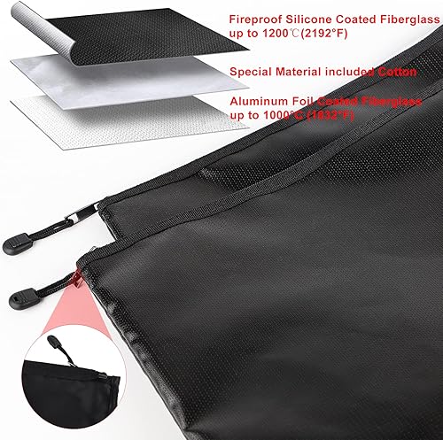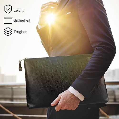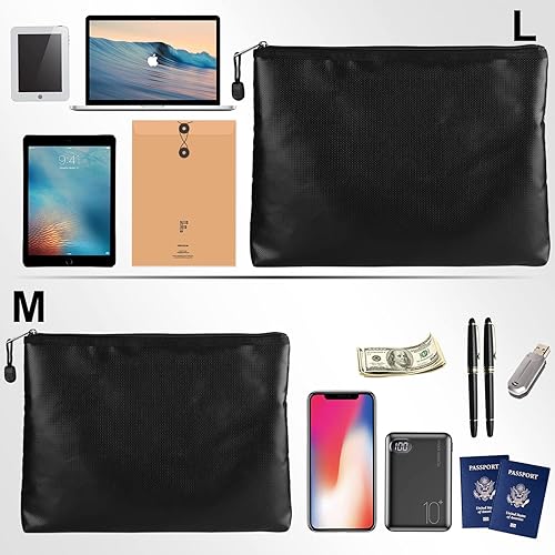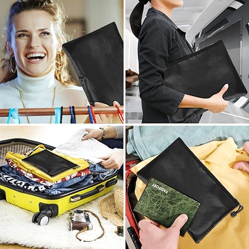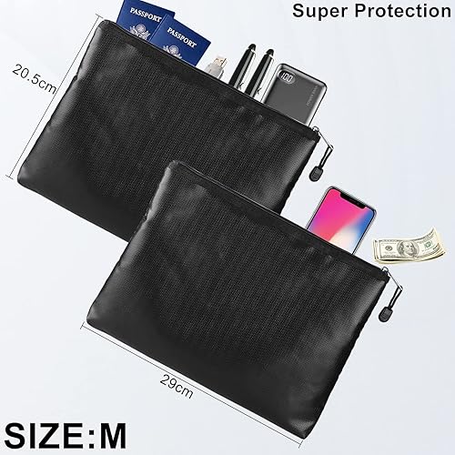 DBREAKS Feuerfeste für Dokumententasche, 2 Stück Feuerfeste Tasche, Tresor Wasserdichte Geldtasche, Schwarz Große Kapazität Aktentasche für Dokumente, Passport, Geld, Bankdatei (29 x 20 cm)