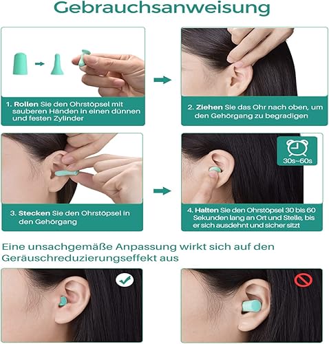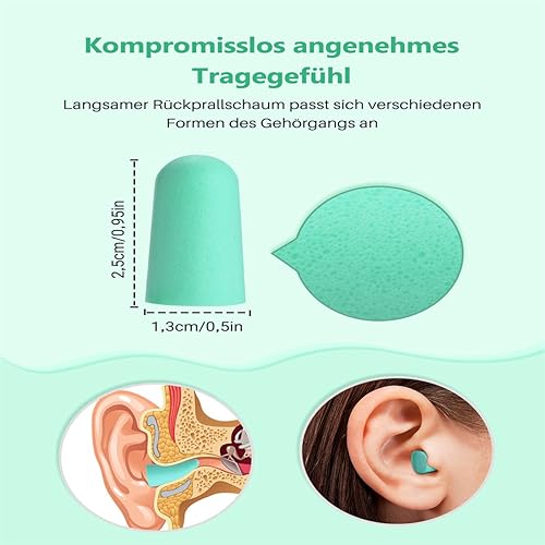 Gehörschutz Stöpsel,Ohrstöpsel zum Schlafen, 60 Paare mit 38dB SNR, Superweiche Schaum Gehörschutzstöpsel, Lärmschutz Earplugs zum Laute Geräusche, Schnarchen, Lernen, Konzerte