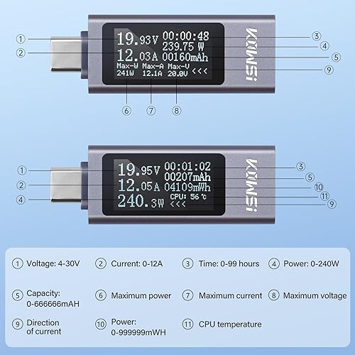 diymore 240W USB Tester Meter Messgerät USB Strommessgerät USB Power Meter USB C Tester Meter USB C Messgerät Voltmeter Multimeter Spannungsmesser [ USB C to USB C ]