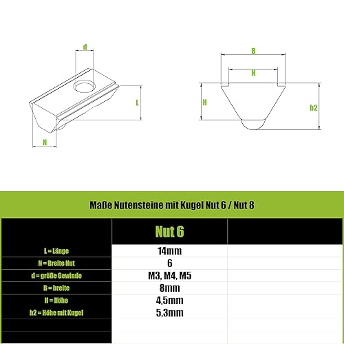 100x M3 Nutenstein für 6mm Nut 6 mit Zentrierung und Federkugel für 3D Drucker und CNC 20x20 Hammermutter 2020