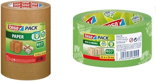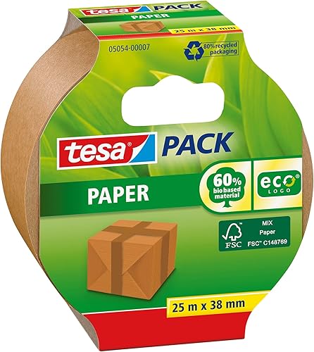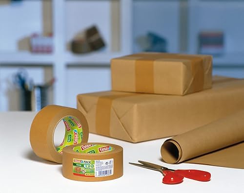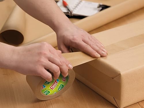 tesapack Paper ecoLogo - Umweltgerechtes Paketband aus Papier, 60% biobasiertes Material - Braun - 50 m x 50 mm