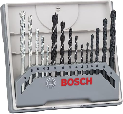 Bosch 15tlg. Bohrer-Set (für Holz, Stein und Metall, Ø 3-8 mm, Zubehör Bohrschrauber und Bohrständer)