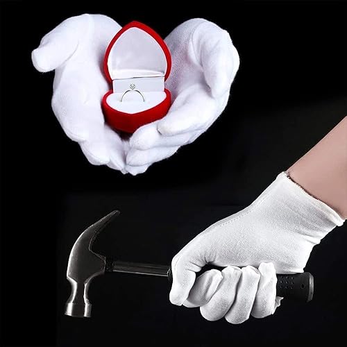 ADOPLX 24 Stück weiße Handschuhe, 12 Paar Baumwollhandschuhe, Sicherheits-Arbeitshandschuhe, dehnbares Futter, Kontrolle, Servieren, feuchtigkeitsspendende Handschuhe, Größe M