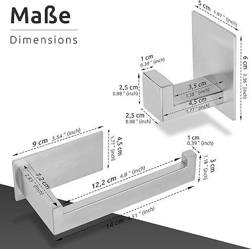 ECENCE 1x Toilettenpapierhalter + 2X Handtuchhaken ohne Bohren, Badezimmerset selbstklebend Chrom Badezimmeraccessoires - aus rostfreiem Edelstahl 304, Handtuchhalter + Klorollenhalter